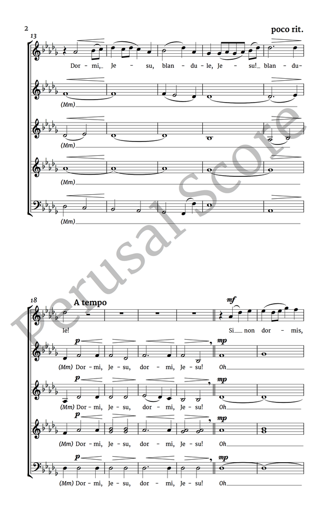 Also called the Virgin's Cradle Hymn, "Dormi, Jesu" is a meditative piece inspired by choral music from Eastern Europe. Sing at Christmas or any time of the year.